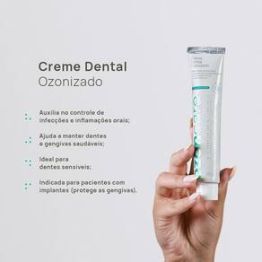 O Creme Dental Ozonizado Sem Flúor é ideal para dentes e gengivas sensíveis, oferecendo proteção natural, sulfatos ou parabenos. Com óleo ozonizado, combate microrganismos e auxilia na recuperação dos tecidos orais, promovendo gengivas e dentes mais saudáveis. Garanta já o seu e tenha uma saúde bucal mais natural e eficaz Creme Dental Ozonizado - sem flúor Formulado com tensoativos extremamente suaves e eficientes que podem ser inclusive por pessoas com dentes e gengivas sensíveis, o Creme Dental Ozonizado tem o propósito de levar os benefícios do ozônio medicinal para a sua saúde Bucal. Todos os ativos foram cuidadosamente selecionados para o desenvolvimento de um produto mais natural, além disso nossa fórmula é totalmente livre de compostos potencialmente tóxicos. Nosso ativo principal, como em todos os nossos produtos, é o óleo ozonizado que auxília no combate à microorganismos e possui propriedades para restabelecer e reparar os tecidos, proporcionando dentes e gengivas mais saudáveis. Principais Ações: - Auxilia no controle de infecções e inflamações orais; - Ajuda a manter dentes e gengivas saudáveis; - Indicada para pacientes com implantes protege as gengivas ; - Ideal para dentes sensíveis. Livre de: - Flúor; - Sulfatos; - Parabenos e triclosan; - Corantes sintéticos; - Matérias-primas derivadas de óleos minerais. Informações Extras: - Prazo de Validade: 3 anos a partir da data de fabricação. Marca: Não Informado