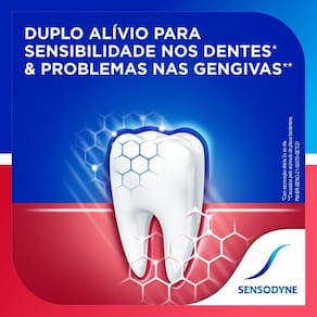 O creme dental Sensodyne Sensibilidade e Gengivas Whitening cria uma camada que protege as áreas sensíveis dos dentes, trazendo alivio na dor de dente causada da sensibilidade nos dentes.
