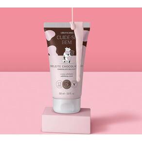 O Creme Esfoliante Cuide-se Bem Deleite Chocolatudo te convida a mergulhar na cremosidade do chocolate na sua rotina de cuidados com a pele, numa aventura indulgente e adocicada