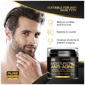 Experimente o Creme Hidratante Facial Masculino da PURE RESEARCH e diga adeus às linhas finas e rugas, enquanto fortalece e revitaliza sua pele para viver o seu melhor hoje!