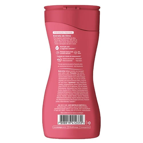 Modo de usar: Aplique uma pequena quantidade da Loção Hidratante Monange na palma da mão e passe sobre a pele massageando suavemente. Não é necessário enxaguar.