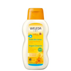 Creme hidratante para o banho do bebê. Weleda Banho Hidratante de Calêndula é para a água da banheira. Limpa suavemente e nutre a pele do bebê. Proporciona um banho aconchegante, pele macia e com o cheirinho bebê limpinho, sem necessidade de enxague.