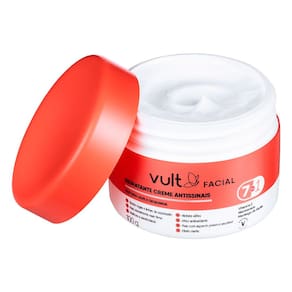 Creme Hidratante Facial Vult Antissinais 100g O hidratante creme antissinais 7 em 1 de Vult facial oferece 48hrs de hidratação e conta com Vitamina E, poderoso ativo antioxidante, Niacinamida e Mantei