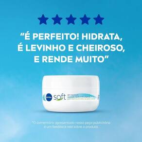NIVEA Soft serve para hidratar e suavizar a pele, proporcionando uma sensação de frescor e revitalização. Sua fórmula é rapidamente absorvida pela pele, evitando a sensação de oleosidade. O creme é ideal para quem busca uma hidratação eficaz e ao mesmo tempo leve, podendo ser utilizado no rosto, nas mãos e em todo o corpo. Por ser dermatologicamente testado, é seguro para uso diário, ajudando a manter a pele macia, hidratada e protegida contra o ressecamento ao longo do dia.