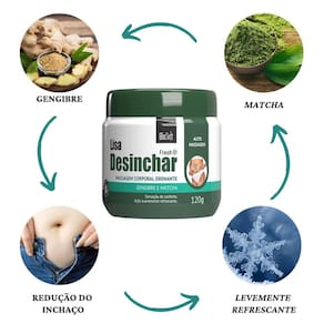 Lisa Desinchar é formulado com extratos naturais de Gengibre e Matcha, que foram selecionados para promover a drenagem dos líquidos retidos melhorando o metabolismo celular e microcirculação. Sua fórmula exclusiva penetra profundamente na pele, agindo diretamente nas áreas problemáticas, como pernas, coxas, braços e abdômen.