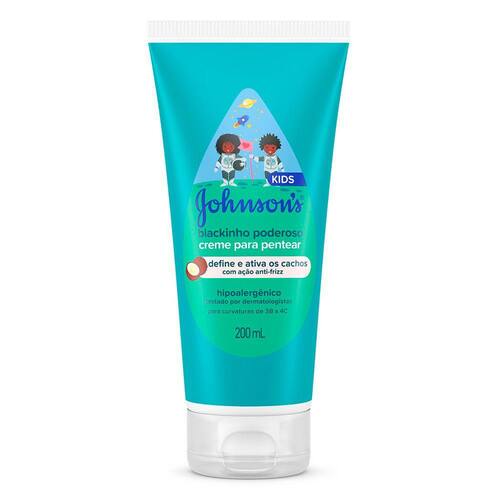 O Creme Para Pentear Johnson Blackinho Poderoso hidrata os fios deixando-os uniformes, macios, sem frizz e com brilho. Os cabelos mais bonitos, saudáveis e com um efeito natural. Desenvolvido especialmente para o cabelo das crianças com curvaturas de 3B a 4C a sua fórmula é Liberada, livre de parabenos, sulfatos, corantes, silicones e petrolatos e deixa os cachos perfumados até a próxima lavagem e soltinhos.