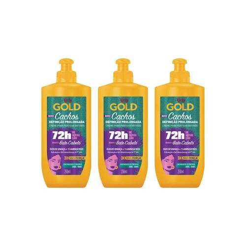 Modo de usar Lave o cabelo com um shampoo adequado para o seu tipo de cabelo e enxágue bem. Retire o excesso de água do cabelo com uma toalha, deixando-o úmido, mas não pingando. Aplique uma quantidade suficiente do creme para pentear niely gold nas palmas das mãos e distribua-o uniformemente pelo cabelo, concentrando-se nas áreas mais danificadas ou ressecadas. Penteie o cabelo para garantir uma distribuição uniforme do produto e desembaraçar os fios. Não é necessário enxaguar o creme para pentear. Deixe-o no cabelo para proporcionar hidratação e proteção ao longo do dia. Penteie ou modele o cabelo conforme desejado. Para melhores resultados, você pode secar o cabelo com um secador ou deixá-lo secar naturalmente. Na compra deste kit será enviado 03 unidades do creme para pentear niely gold de 250g cada