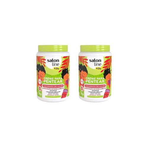 Descriçao Creme pentear salon line 1000g chachinhos definidos kids/vegano/controle de frizz/extra brilho/sem enxague/oleo de semente de melancia/oleo de macadamia/oleo de coco/sem sal/cabelos secos/rende ate 30 aplicacoes/filtro uv.
