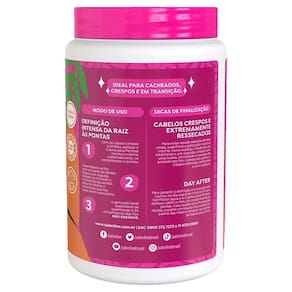 Com os cabelos limpos e úmidos, aplique o SALON LINE CREME PARA PENTEAR DEFINIÇÃO INTENSA uniformemente da raiz até as pontas. Desembarace os fios com um pente de dentes largos e em seguida amasse-os iniciando pelas pontas até a raiz, repita o movimento de amassar e soltar, auxiliando na formatação de cachos naturais. Não enxágue. Dica: Quando os cabelos estiverem secos, solte os cachos com as mãos utilizando o Day After da linha #TodeCacho. O resultado é uma finalização perfeita dos cachos durante todo o dia. A quantidade ideal a ser aplicada dependerá do comprimento e volume do cabelo.
