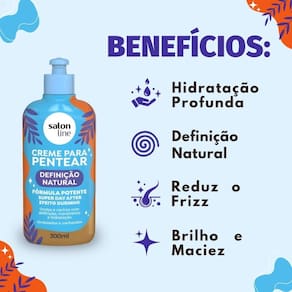 O Creme Para Pentear Salon Line Definição Natural 300ml é perfeito para a finalização de todos os tipos de cabelo, ideal para uso diário. É a escolha certa para quem busca praticidade e resultados de salão em casa, garantindo cachos e ondas definidos e saudáveis em qualquer ocasião.