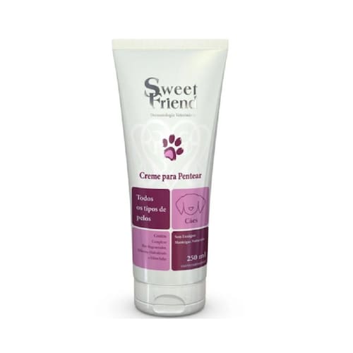 A linha de produtos Sweet Friend para cães, higieniza e hidrata com suavidade os fios sensibilizados por agentes externos, restaurando-os, dando mais vida, força e leveza aos pelos.