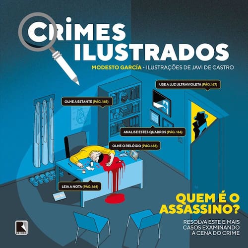 Você é capaz de desvendar um assassinato apenas analisando a cena do crime? Neste livro interativo que reúne os jogos populares de Modesto García nas redes sociais e ilustrado por Javi de Castro, desperte o detetive que há em você seguindo as pistas para solucionar o crime. Transforme-se em um verdadeiro detetive de homicídios e comece a reunir as evidências porque aqui, para desvendar o crime, você precisará de todas as suas habilidades de observação e dedução. Por que há uma garrafa quebrada no chão? A quem pertencem estas pegadas? O que a vítima queria dizer com a última mensagem que deixou? Vá juntando aos poucos as peças do quebra-cabeças para descobrir o que aconteceu e quem é o verdadeiro culpado.Crimes ilustrados vai te prender com sua inovação, criatividade e originalidade. Com doze casos aguardando solução, o leitor precisa estar com suas habilidades investigativas afiadas para desvendar o mistério.São suicídios suspeitos, assassinatos sangrentos, disputas familiares por heranças multimilionárias, crimes passionais, identidades ocultas, segredos mortais...Você aceita o desafio?