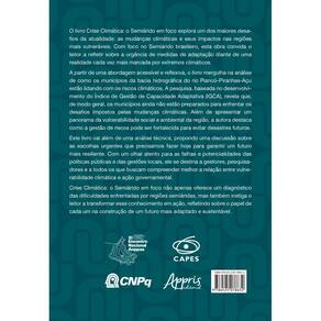 O livro Crise Climática: o Semiárido em foco explora um dos maiores desafios da atualidade: as mudanças climáticas e seus impactos nas regiões mais vulneráveis. Com foco no Semiárido brasileiro, esta obra convida o leitor a refletir sobre a urgência de medidas de adaptação diante de uma realidade cada vez mais marcada por extremos climáticos. A partir de uma abordagem acessível e reflexiva, o livro mergulha na análise de como os municípios da bacia hidrográfica do rio Piancó-Piranhas-Açu estão lidando com os riscos climáticos. A pesquisa, baseada no desenvolvimento do Índice de Gestão de Capacidade Adaptativa (IGCA), revela que, de modo geral, os municípios ainda não estão preparados para enfrentar os desafios impostos pelas mudanças climáticas. Além de apresentar um panorama da vulnerabilidade social e ambiental da região, a autora destaca como a gestão de riscos pode ser fortalecida para evitar desastres futuros. Este livro vai além de uma análise técnica, propondo uma discussão sobre as escolhas urgentes que precisamos fazer hoje para garantir um futuro mais resiliente. Com um olhar atento para as falhas e potencialidades das políticas públicas e das gestões locais, ele se destina a gestores, pesquisadores e a todos os que buscam compreender melhor a relação entre vulnerabilidade climática e ação governamental. Crise Climática: o Semiárido em foco não apenas oferece um diagnóstico das dificuldades enfrentadas por regiões semiáridas, mas também instiga o leitor a transformar esse conhecimento em ação, refletindo sobre o papel de cada um na construção de um futuro mais adaptado e sustentável.