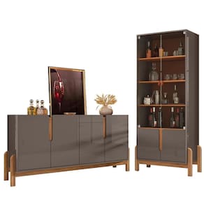 Cristaleira 050519 E Buffet 050518 Para Sala Cinza Perola Cedro Dcasa Cinza Perola Cedro