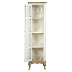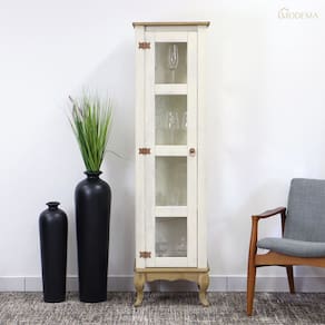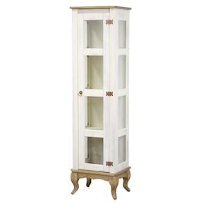 Adicione um toque de elegância à sua decoração com essa cristaleira rústica de madeira, uma peça que combina estilo clássico e funcionalidade. Feita 100% em madeira maciça e com um impecável acabamento em cera, esta cristaleira exibe um design rústico. As laterais de vidro permitem destacar suas porcelanas e objetos decorativos nas 3 prateleiras, enquanto os pés Luiz XV e as dobradiças em metal no estilo mexicano reforçam o charme único. Essa cristaleira de 1 porta é compacta e versátil, ideal para quem busca um móvel que seja ao mesmo tempo prático e decorativo, perfeito para salas de estar, jantar ou cozinhas.