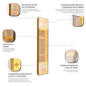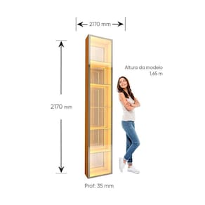 Com portas em vidro reflecta e requadro em alumínio, traz um toque moderno e refinado. As prateleiras espaçosas são ideais para organizar e exibir itens decorativos com estilo, enquanto a iluminação LED em tom quente cria uma atmosfera aconchegante e sofisticada.