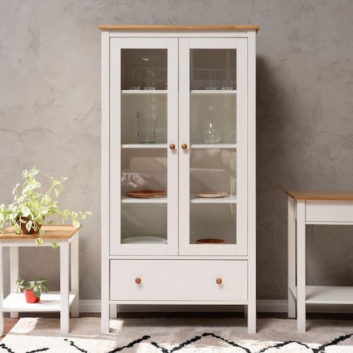 Cristaleira 2 Portas 1 Gaveta Madeira Maciça Vanilla CabeCasa MadeiraMadeira Amêndoa/Branco