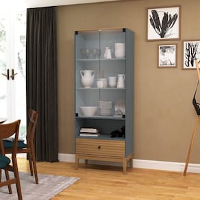 Cristaleira 2 Portas 1 Gaveta Mel/Petroleo - Cinza