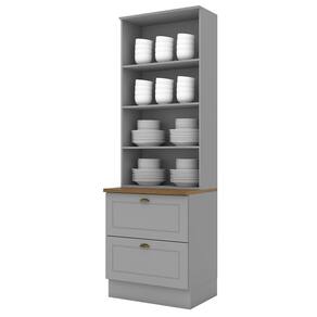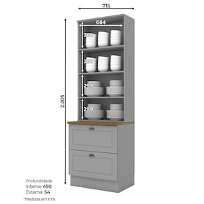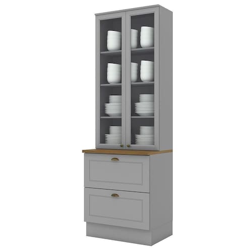 Cristaleira 2 Portas E 2 Gavetas Americana Cinza Com Tampo Nature - Móveis Henn Cinza-nature
