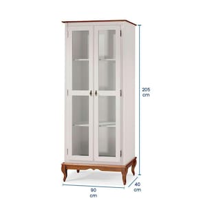 60300 Linz Móveis é a peça ideal! Um móvel usual e elegante que pode ser incorporado a qualquer tipo de ambiente, que certamente dará um toque requintado a seu cômodo, conta com duas portas em vidro que permitem exibir a sua organização interior e três espaçosas prateleiras que acomodarão perfeitamente seus objetos. Produzida em Madeira Maciça para tons amadeirado em verniz e MDF nos tons coloridos com acabamento laca, materiais de alta qualidade e durabilidade, juntamente com os pés também em madeira maciça com acabamento em verniz, no estilo Luis XV garantem mais estabilidade e resistência para você usufruir dessa cristaleira rústica por muito tempo.