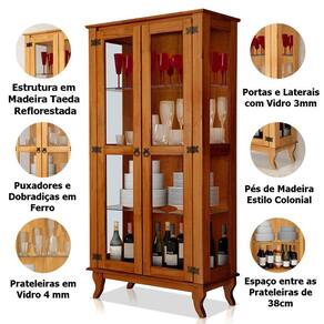 Características da Cristaleira de Madeira Maciça 2 Portas de Vidro Luma: