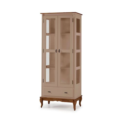 Cristaleira 2 Portas e Laterais em Vidro 1 Gaveta Pés Luis XV Sevilha - Amêndoa / Imbuia - Bege