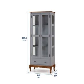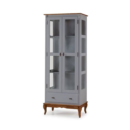 Cristaleira 2 Portas e Laterais em Vidro 1 Gaveta Pés Luis XV Sevilha - Cinza/ Imbuia