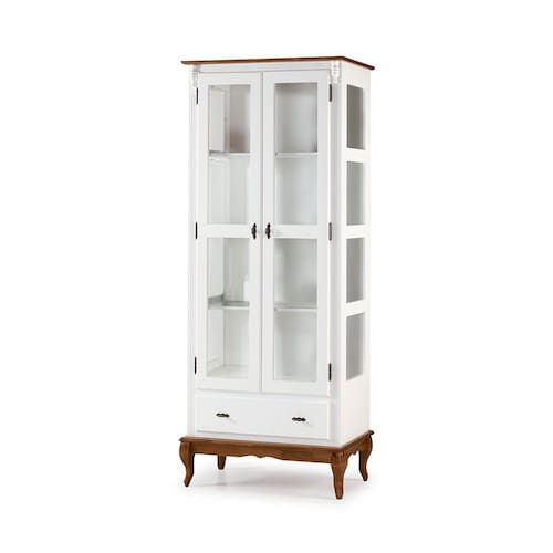 Cristaleira 2 Portas e Laterais em Vidro 1 Gaveta Pés Luis XV Sevilha - Laca Branca/ Imbuia - Branco