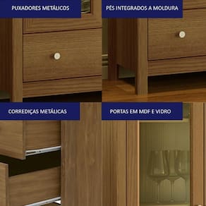 Modelo: Cristaleira 2 Portas Vidro 1 Gaveta 180x80 cm E954 Dtall