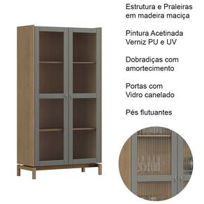 Madeira maciçaA cristaleira combina elegância e funcionalidade, sendo produzida em madeira maciça de pinus de reflorestamento, com acabamento refinado em pintura acetinada verniz PU e UV para maior durabilidade. Com 100 cm de largura, o design contém 2 portas de vidro canelado incolor, que adicionam sofisticação ao design, enquanto as dobradiças com amortecimento garantem um fechamento suave e silencioso. Os pés flutuantes proporcionam um visual moderno e leve, e as prateleiras em madeira maciça oferecem resistência e praticidade para a organização dos seus itens. Este móvel chegará em sua casa separado em 02 volumes.