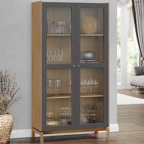 A cristaleira combina elegância e funcionalidade, sendo produzida em madeira maciça de pinus de reflorestamento, com acabamento refinado em pintura acetinada verniz PU e UV para maior durabilidade. Com 100 cm de largura, o design contém 2 portas de vidro canelado incolor, que adicionam sofisticação ao design, enquanto as dobradiças com amortecimento garantem um fechamento suave e silencioso. Os pés flutuantes proporcionam um visual moderno e leve, e as prateleiras em madeira maciça oferecem resistência e praticidade para a organização dos seus itens. Este móvel chegará em sua casa separado em 02 volumes.