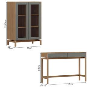 O conjunto Aparador e Cristaleira une sofisticação, funcionalidade e resistência em peças que se complementam com harmonia. Ambos são produzidos em madeira maciça de pinus de reflorestamento, com acabamento em pintura acetinada PU e UV que valoriza o visual e garante durabilidade. O aparador conta com tampo e frentes de gaveta em MDF, 2 gavetas com corrediças telescópicas e 120 cm de largura, sendo ideal para a organização de objetos na sala de estar. Já a cristaleira, com 80 cm de largura, possui 2 portas com vidro canelado incolor, dobradiças com amortecimento e prateleiras em madeira maciça, perfeita para expor itens com elegância. Ambos os móveis possuem pés flutuantes que conferem um toque moderno ao conjunto. Estes movéis chegarão em sua casa separados em 03 volumes.