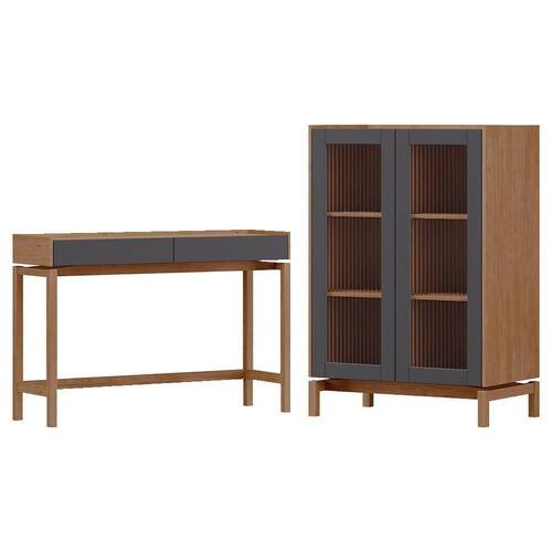O conjunto Aparador e Cristaleira une sofisticação, funcionalidade e resistência em peças que se complementam com harmonia. Ambos são produzidos em madeira maciça de pinus de reflorestamento, com acabamento em pintura acetinada PU e UV que valoriza o visual e garante durabilidade. O aparador conta com tampo e frentes de gaveta em MDF, 2 gavetas com corrediças telescópicas e 120 cm de largura, sendo ideal para a organização de objetos na sala de estar. Já a cristaleira, com 80 cm de largura, possui 2 portas com vidro canelado incolor, dobradiças com amortecimento e prateleiras em madeira maciça, perfeita para expor itens com elegância. Ambos os móveis possuem pés flutuantes que conferem um toque moderno ao conjunto. Estes movéis chegarão em sua casa separados em 03 volumes.
