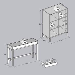 Peso Suportado: Gavetas 05Kg, prateleiras 10Kg