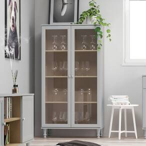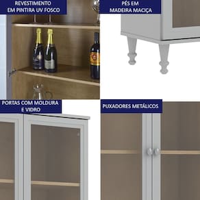 Modelo: Cristaleira 2 Portas Vidro Pés Madeira 151x80 cm E957 Dtall