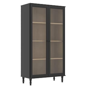 Cristaleira 2 Portas Vidro Pés Madeira 151x80 Cm E957 Preto Dtall Preto