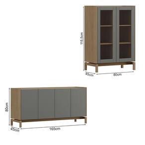 O conjunto Cristaleira e Balcão Buffet une sofisticação, funcionalidade e resistência em peças que se complementam com harmonia. Ambos são produzidos em madeira maciça de pinus de reflorestamento, com acabamento em pintura acetinada PU e UV que valoriza o visual e garante durabilidade. O balcão buffet com 165 cm de largura conta com tampo e frentes de portas e gaveta em MDF, 1 gaveta com corrediças telescópicas e 2 prateleiras internas, sendo ideal para a organização de objetos na sala de jantar. Já a cristaleira, com 80 cm de largura, possui 2 portas com vidro canelado incolor, dobradiças com amortecimento e prateleiras em madeira maciça, perfeita para expor itens com elegância. Ambos os móveis possuem pés flutuantes que conferem um toque moderno ao conjunto. Estes móveis chegarão em sua casa separados em 03 volumes.