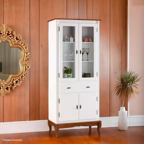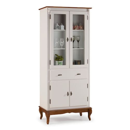 Cristaleira 4 Portas 2 Prateleiras 1 Gaveta e Pés Luiz XV 60308 Linz Móveis - Off White/Imbuia Glazer - Off White