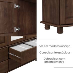 Cristaleira e Balcão, um conjunto projetado para quem busca móveis que combinam elegância e funcionalidade para complementar sua decoração. Produzido em madeira maciça de pinus de reflorestamento, sua estrutura robusta garante durabilidade e resistência. A Cristaleira conta com 04 portas, sendo 02 de vidro incolor, e 02 gavetas, e o Balcão com 04 portas e 04 gavetas. As portas possuem dobradiças com amortecimento, e as gavetas corrediças telescópicas, que proporcionam abertura suave e silenciosa. Com pintura acetinada com verniz PU e UV, que realça a beleza natural da madeira enquanto protege contra desgastes do dia a dia e puxadores metálicos que adicionam um toque moderno ao design clássico do produto. Os pés torneados em madeira maciça garantem estabilidade e charme artesanal. Oferecem amplo espaço interno, perfeitos para organizar louças, objetos decorativos ou itens de sua preferência. Estes móveis chegarão em sua casa separados em 03 volumes.