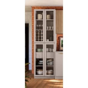 É indicada para armazenar e organizar aparelhos de jantar, copos e taças em suas 4 prateleiras, além disso possui e uma linda adega com detalhes em madeira maciça que suporta até 12 garrafas.