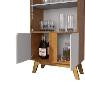 Cristaleira Madri, definição de design moderno com detalhes retrô. Estruturada em MDP/MDF (15 mm) com acabamento em pintura UV texturizada. Conta com 4 portas (sendo 2 em vidro 4 mm), puxadores em PVC cromado, design curvo e dobradiças metálicas, além de prateleiras internas e pés em madeira maciça (Pinus). Este produto será entregue em 1 volume. Este produto será entregue em 1 volume.