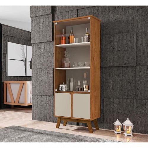 A Cristaleira Madri possui design retrô e com certeza irá agregar mais charme ao seu ambiente. Conta com amplo espaço interno que irá acomodar perfeitamente suas bebidas e taças. As portas superiores de vidro e as inferiores com design curvo, conferem maior sofisticação ao móvel.