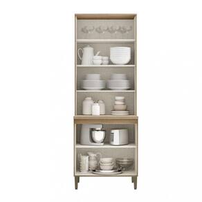 Características: 2 Portas com moldura 2 Portas com vidro, dobradiças metálicas 35mm com sistema de amortecimento, 1 Prateleira removível 4 Tampos de 15mm, 1 tampo de 30mm, 2 Puxadores ponto e puxadores concha 4 Pés reguláveis, sistema de montagem com parafusos e cavilhas.