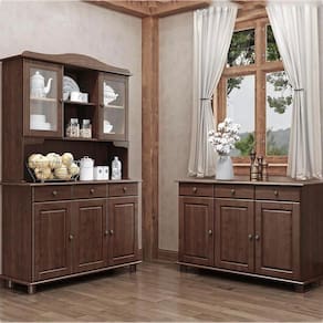Cristaleira e Balcão, um conjunto projetado para quem busca móveis que combinam elegância e funcionalidade para complementar sua decoração. Produzido em madeira maciça de pinus de reflorestamento, sua estrutura robusta garante durabilidade e resistência. A Cristaleira conta com 05 portas, sendo 02 de vidro incolor e 01 gaveta, e o Balcão com 03 portas e 03 gavetas. As portas possuem dobradiças com amortecimento, e as gavetas corrediças telescópicas, que proporcionam abertura suave e silenciosa. Com pintura acetinada com verniz PU e UV, que realça a beleza natural da madeira enquanto protege contra desgastes do dia a dia e puxadores metálicos que adicionam um toque moderno ao design clássico do produto. Os pés torneados em madeira maciça garantem estabilidade e charme artesanal. Oferecem amplo espaço interno, perfeitos para organizar louças, objetos decorativos ou itens de sua preferência. Estes móveis chegarão em sua casa separados em 03 volumes.