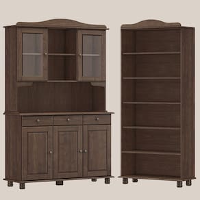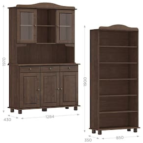 Cristaleira e Estante Livreiro, um conjunto projetado para quem busca móveis que combinam elegância e funcionalidade para complementar sua decoração. Produzido em madeira maciça de pinus de reflorestamento, sua estrutura robusta garante durabilidade e resistência. A Cristaleira de 128,4cm de largura, conta com 05 portas sendo 02 de vidro incolor, que possuem dobradiças com amortecimento. As gavetas com corrediças telescópicas proporcionam abertura suave e máxima praticidade para guardar itens menores, enquanto os puxadores metálicos adicionam um toque moderno ao design clássico do produto. Com amplo espaço para organização, a Estante de 85cm de largura é perfeita para acomodar livros, objetos decorativos ou itens de sua preferência. Ambos os móveis possuem pintura acetinada com verniz PU e UV, que realça a beleza natural da madeira enquanto protege contra desgastes do dia a dia, e pés torneados em madeira maciça que garantem estabilidade e charme artesanal. Estes móveis chegarão em sua casa separados em 03 volumes.