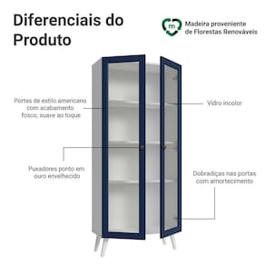 Cor: Azul | Garantia: 3 meses contra de fabricação | Dimensões - Altura: 157 cm | Dimensões - Largura: 70 cm | Dimensões - Profundidade: 31 cm | Produto: Cristaleira | Marca: Madesa | Peso aproximado: 25 kg | Material: MDP | Estado de Origem: RS | Conteúdo da embalagem: Uma Cristaleira | Material para Filtro: MDP | Instruções/Cuidados: Utilize um pano limpo, levemente umedecido e seque em seguida a superfície. Não usar produtos químicos ou abrasivos para a limpeza. Recomendamos polir seu móvel com lustra-móveis duas a três vezes por ano. | Produto precisa de Montagem?: Sim | Peso Produto Com Embalagem (Kg): 25,63 | Altura do Produto com Embalagem (cm): 23 | Largura Produto Com Embalagem (cm): 35,1 | Comprimento Produto Com Embalagem (cm): 158,2 | Descrição do Tamanho: 157 cm x 70 cm x 31 cm | Nome do Simples no Fornecedor: Cristaleira 70 cm 2 Portas de Vidro com Pés Cônicos Branco/Azul/Branco Vik Madesa | Fabricante: Madesa | RBN: Casa/Móveis/Móveis de Quarto | Materiais do corpo: MDP | Quantidade de caixas de embalagem: 1 | Bullet Point 1: Dimensões: 157 cm altura x 70 cm largura x 31 cm profundidade | Bullet Point 2: As portas contam com dobradiças com amortecimento, garantindo um fechamento suave e silencioso. | Bullet Point 3: Os puxadores ponto em ouro envelhecido, feitos em metal resistente, adicionam personalidade e um charme único. | Bullet Point 4: Possui acabamento de alta resistência, conservando a beleza do móvel por muito mais tempo | É Frágil: Não | Quantidade de Itens: 1 | Certificação de teste externa: Sim | Componentes incluídos: Manual de montagem | Precisa de baterias ou pilhas: Não | da peça (part_number): G25832M7VKPC | Peso do item (item_weight): ;unit=kilograms | Dimensões do item P x L x A (item_depth_width_height): depth#value=31;depth#unit=centimeters;height#value=157;height#unit=centimeters;width#value=70;width#unit=centimeters | Requer montagem (REQUIRES_ASSEMBLY): Sim | Inclui manual de montagem (INCLUDES_ASSEMBLY_MANUAL): Sim | do modelo (model_number): G25832M7VKPC | Cor: Branco/Azul