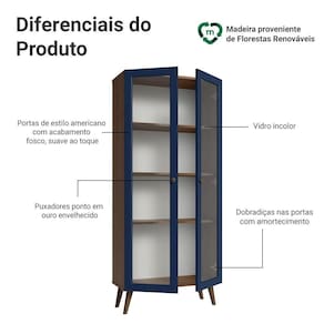 Cor: Azul | Garantia: 3 meses contra de fabricação | Dimensões - Altura: 157 cm | Dimensões - Largura: 70 cm | Dimensões - Profundidade: 31 cm | Produto: Cristaleira | Marca: Madesa | Peso aproximado: 25 kg | Material: MDP | Estado de Origem: RS | Conteúdo da embalagem: Uma Cristaleira | Material para Filtro: MDP | Instruções/Cuidados: Utilize um pano limpo, levemente umedecido e seque em seguida a superfície. Não usar produtos químicos ou abrasivos para a limpeza. Recomendamos polir seu móvel com lustra-móveis duas a três vezes por ano. | Produto precisa de Montagem?: Sim | Peso Produto Com Embalagem (Kg): 25,63 | Altura do Produto com Embalagem (cm): 23 | Largura Produto Com Embalagem (cm): 35,1 | Comprimento Produto Com Embalagem (cm): 158,2 | Descrição do Tamanho: 157 cm x 70 cm x 31 cm | Nome do Simples no Fornecedor: Cristaleira 70 cm 2 Portas de Vidro com Pés Cônicos Rustic/Azul/Rustic Vik Madesa | Fabricante: Madesa | RBN: Casa/Móveis/Móveis de Quarto | Materiais do corpo: MDP | Quantidade de caixas de embalagem: 1 | Bullet Point 1: Dimensões: 157 cm altura x 70 cm largura x 31 cm profundidade | Bullet Point 2: As portas contam com dobradiças com amortecimento, garantindo um fechamento suave e silencioso. | Bullet Point 3: Os puxadores ponto em ouro envelhecido, feitos em metal resistente, adicionam personalidade e um charme único. | Bullet Point 4: Possui acabamento de alta resistência, conservando a beleza do móvel por muito mais tempo | É Frágil: Não | Quantidade de Itens: 1 | Certificação de teste externa: Sim | Componentes incluídos: Manual de montagem | Precisa de baterias ou pilhas: Não | da peça (part_number): G25832M9VKPC | Peso do item (item_weight): ;unit=kilograms | Dimensões do item P x L x A (item_depth_width_height): depth#value=31;depth#unit=centimeters;height#value=157;height#unit=centimeters;width#value=70;width#unit=centimeters | Requer montagem (REQUIRES_ASSEMBLY): Sim | Inclui manual de montagem (INCLUDES_ASSEMBLY_MANUAL): Sim | do modelo (model_number): G25832M9VKPC | Cor: Rustic/Azul