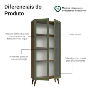 Cristaleira 70 cm 2 Portas de Vidro com Pés Cônicos Rustic/Verde/Rustic Vik Madesa - Cristaleira Madesa 2 Portas de Vidro com Pés Cônicos