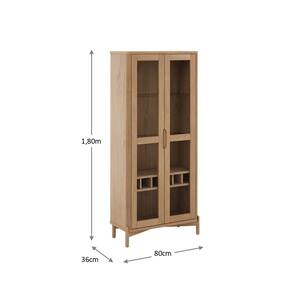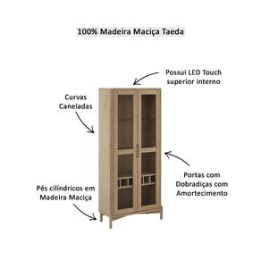 Características: Estrutura em Madeira Maciça de Pinus Taeda de Reflorestamento Pintura semi-brilho 02 Portas com dobradiças com amortecimento Puxadores cava Curvas caneladas Possui Led Touch superior interno Pés cilindricos Possui adega Vidro liso incolor Peso maximo suportado pela Prateleira de Vidro: 05Kg distribuidos Peso maximo suportado pela Prateleira: 10kg distribuídos