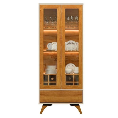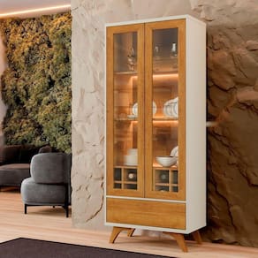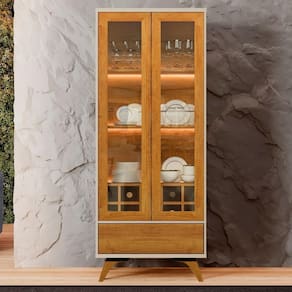 Uma Cristaleira moderna e sofisticada, um produto perfeito para embalezar seu ambiente. A Cristaleira possui 2 portas de vidro emolduradas, com abertura e fecho ao toque, um produto totalmente moderno. Além de iluminação em Led nas pratileiras, possui também corrediça telescópicas em sua gaveta e uma linda adega para 10 garrafas, incluindo lindos pés de madeira maciça. Esse produto contém nas cores Naturalle e Naturalle Off White.